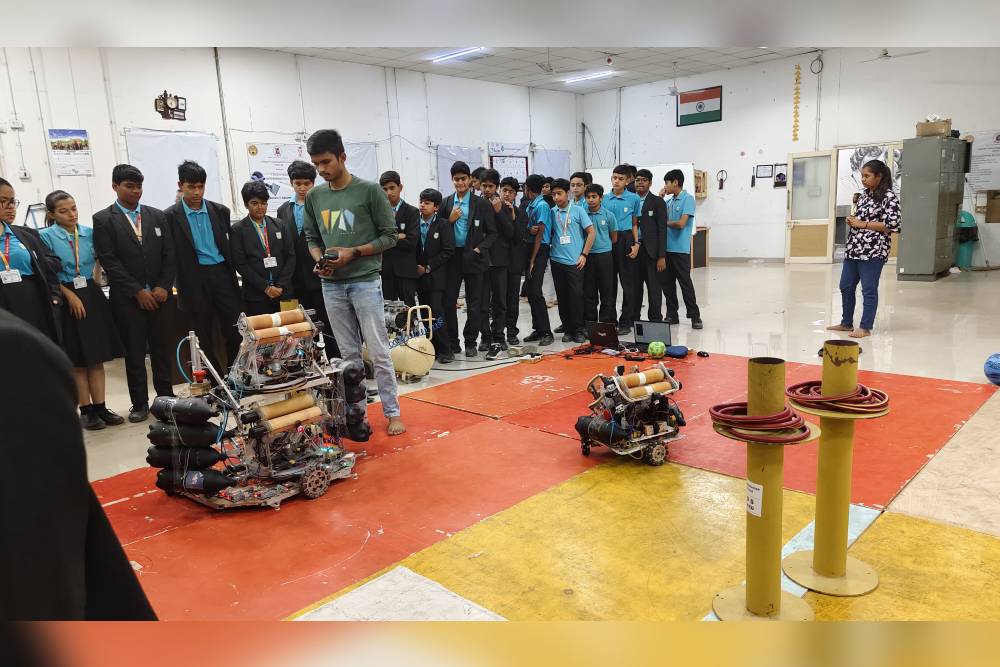 In Robo Lab robots and projects made by students were demonstrated. They were surprised to see how students of Robcon club of the college had invented a robot to do the worship of god, by doing aarti or offering flowers to god.